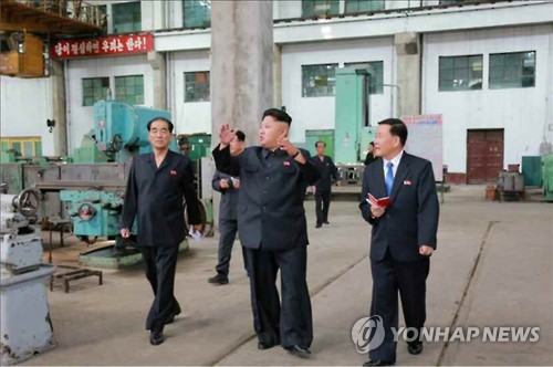 | △ 북한 김정은, 전기기관차업체 현지지도 (서울=연합뉴스) 김정은 국방위원회 제1위원장이 19일 김종태전기기관차연합기업소를 현지지도했다고 노동신문이 20일 보도했다. 김정은 제1위원장은 관계자들에게 첨단기술이 도입된 새 세대 전기기관차를 더 많이 만들어낼 것을 지시했다. |