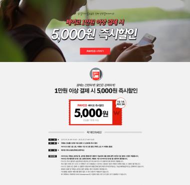 위메프는 27일까지 위메프 모바일(m.wemakeprice.com/m/)에서 페이코로 1만원 이상 결제하면 5천원을 즉시 할인해주는 이벤트를 진행한다.
