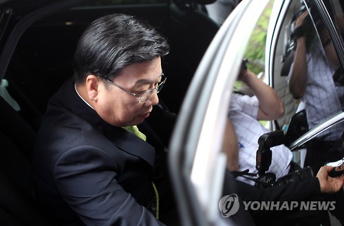 | △ 권선택 대전시장 '항소심도…' (대전=연합뉴스) 이재림 기자 = 권선택 대전시장이 20일 대전 서구 대전고등법원에서 열린 자신의 공직선거법 위반 등 혐의 사건 항소심에서 당선무효형을 선고받고서 청사 밖에 마련된 차량에 올라타고 있다. |