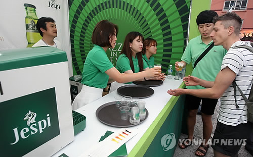 | △ 제주 지하수와 제주산 보리로 만든 프리미엄 맥주인 '제스피'를 시음하는 관광객들 (연합뉴스 자료사진) |