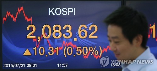 (서울=연합뉴스) 김수진 기자 = 코스피가 21일 3거래일 만에 반등해 2,080선을 회복했다.