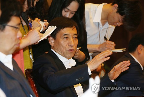 | △ 이주열 한국은행 총재 모두발언 (서울=연합뉴스) 박동주 기자 = 이주열 한국은행 총재가 22일 오전 서울 중구 한국은행에서 열린 경제동향간담회에서 모두발언하고 있다. |