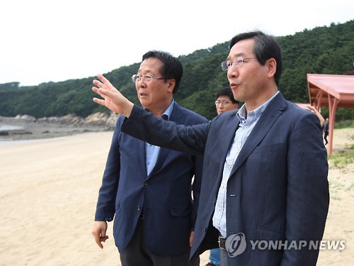 △ 소이작도 해변 둘러보는 유정복시장 (인천=연합뉴스) 최은지 기자 = 유정복 인천시장이 21일 오후 인천시 옹진군 자월면 소이작도 작은풀안해변을 둘러보고 있다. 유 시장은 섬 관광화 활성화를 위한 '섬 프로젝트'의 일환으로 이날 소이작도를 비롯한 섬 4곳을 잇따라 방문했다. 2015.7.21 chamse@yna.co.kr