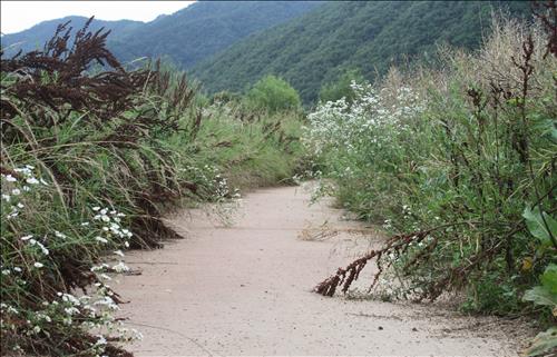 옥천군 동이면 적하리의 둔치는 어른 키만큼 우거진 잡초 때문에 출입하기 힘들 정도고, 영동군 심천면 고당리의 둔치는 산책로 등이 파손돼 보는 이들의 눈살을 찌푸리게 하고 있다.