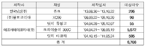 '제작 결함' 닛산·볼보·크라이슬러 6천여대 리콜