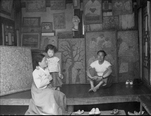 | △ 1959년 창신동 자택 마루에서 <박수근미술관 사진 제공> |