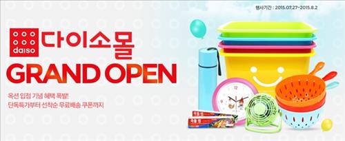 (서울=연합뉴스) 신호경 기자 = 온라인쇼핑사이트 옥션(www.auction.co.kr)이 생활용품 기업 '다이소' 쇼핑몰의 공식 입점을 기념해 다음 달 2일까지 10만여가지 다이소 상품들을 최대 62% 할인 판매한다.