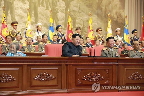 | △ 집권 초기 대중적 인지도를 높이기 위해 공개활동에 적극 나섰던 김정은 북한 국방위원회 제1위원장이 올들어 공개활동를 점점 줄이고 있는 것으로 집계됐다. 사진은 지난 25일 평양에서 열린 전국노병대회에서 축하 연설을 하고 있는 김정은 북한 국방위원회 제1위원장. (연합뉴스 자료사진) |