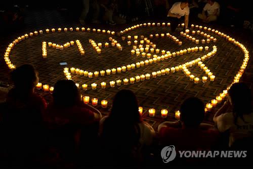 △ 말레이항공 실종기 탑승자를 추모하기 위해 지난해 8월 중국 베이징에서 열린 촛불행사. 2015.7.27 (AP=연합뉴스 자료사진)
