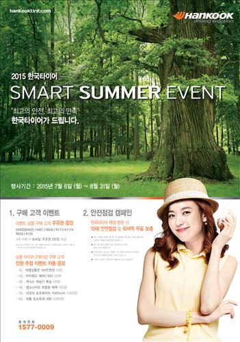 (서울=연합뉴스) 심재훈 기자 = 한국타이어[161390]는 타이어 구매 고객 대상으로 여행상품권과 주유권 등 경품을 제공하는' 2015 한국타이어 스마트 썸머 이벤트’를 오는 8월 31일까지 실시한다.