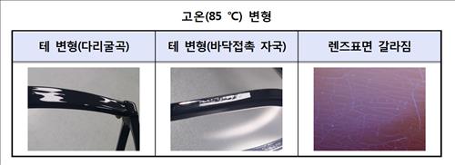 구찌, 오클리, 캘빈클라인 등 3개 제품만 85℃에서도 모양 변형이나 손상이 없었다.