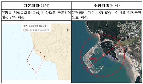 해수부는 마리나항만 예정구역을 과거처럼 육상, 해상으로 나눠서 지정하지 않고 육지와 해상이 만나는 지점부터 반경 500m로 변경했다.