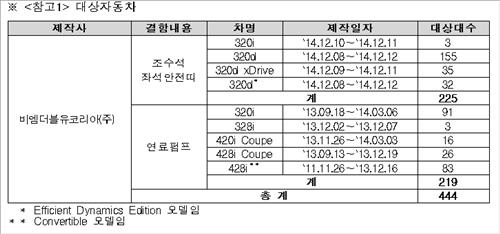 BMW 3·4시리즈 444대 제작 결함으로 리콜