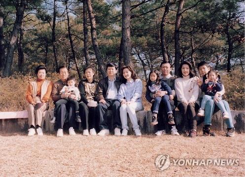 | △ 신격호 롯데 총괄회장이 1998년 울산 둔기리에서 가족들과 찍은 사진. 왼쪽부터 시게미쓰 하쓰고, 신 총괄회장, 신동주 전 롯데홀딩스 부회장 아들 정훈, 맏딸 신영자 롯데장학 복지재단 이사장, 장남 신동주 전 부회장, 큰 며느리 조은주, 차남 신동빈 롯데그룹 회장, 신회장의 장녀 규미, 둘째 며느리 시게미쓰 마나미, 신회장 아들 유열, 차녀 승은. 2015.7.29 << 롯데그룹 제공 >> |