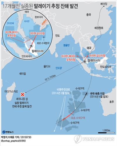한편, 전날 동아프리카 인도양 레위니옹 섬에서 발견된 물체가 프랑스 항공당국의 조사 결과 MH370편의 잔해로 공식 판명될 경우 국제조사팀은 잔해물 분석을 통해 항공기에서 폭발이나 결정적 결함이 있었는지를 확인할 수 있을 것으로 기대하고 있다.
