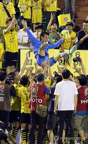 ◇ "나이는 두 배 됐지만, 실점률은 변함없어"= 700경기 가운데 기억에 남는 경기를 꼽아달라는 말에 김병지는 "당연히 첫 경기하고 1998년 포항과의 플레이오프에서 헤딩골을 넣었던 순간, 2004년 챔피언결정전에서 승부차기 실축했던 때가 떠오른다"고 답했다.