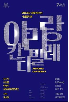 먼저 국립극장은 15일 '아리랑'으로 꾸미는 광복 70주년 기념음악회 '아리랑 칸타빌레'를 무대에 올린다.