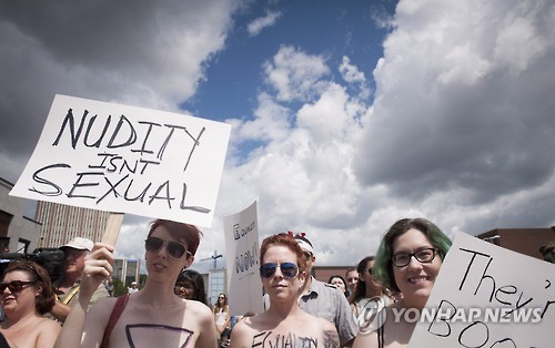 캐나다 여성 수백명, "상의 벗을 자유 달라" 거리시위