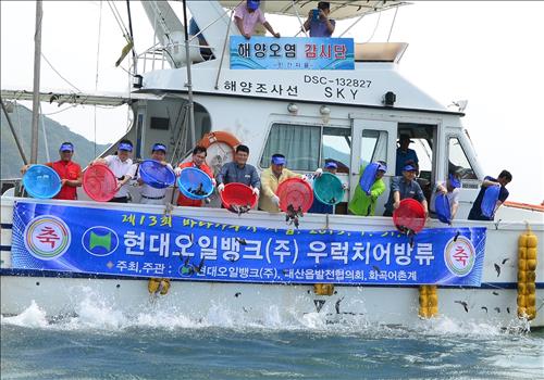 이완섭 서산시장과 어민 대표, 현대오일뱅크 임직원 등 50여명이 방류선을 타고 삼길포와 난지도 인근 해역을 직접 돌며 우럭을 방류했다.