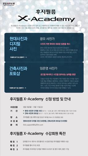 (서울=연합뉴스) 고상민 기자 = 후지필름 코리아는 사진 교육 프로그램인 'X-아카데미'의 가을학기 수강생을 3일부터 선착순 모집한다고 밝혔다.