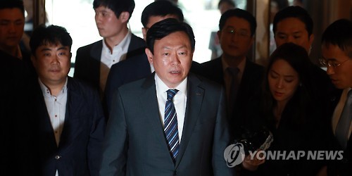 | △ 발걸음 옮기는 신동빈 롯데 회장 (서울=연합뉴스) 홍해인 기자 = 신동빈 롯데그룹 회장이 3일 귀국 후 서울 소공동 롯데호텔 1층 로비에 도착해 엘리베이터로 향하고 있다. |