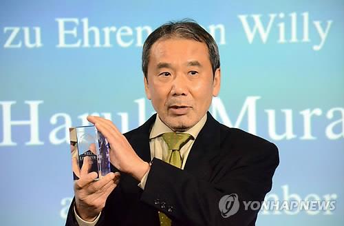 | △ 일본의 세계적인 인기 작가 무라카미 하루키(村上春樹가 2014년 11월 7일(현지시간) 독일 베를린에서 독일의 유력 일간지 '디 벨트'가 주는 '벨트 문학상'을 받고 소감을 밝히고 있다.(교도=연합뉴스 자료사진) |