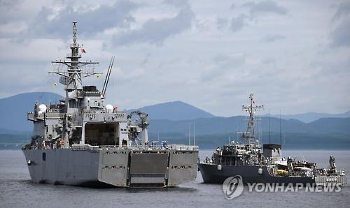 △ 일본 해상자위대가 지난달 22일 미국 해군과 합동으로 기뢰 제거 훈련을 실시하는 장면.(교도.연합뉴스.자료사진)