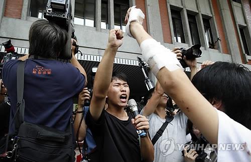 (타이베이=연합뉴스) 노해랑 통신원 = 대만 정부의 새 교과서 개편에 반발하는학생들의 시위 사태가 장기화하면서 자칫 정치 쟁점화할 조짐을 보이고 있다,