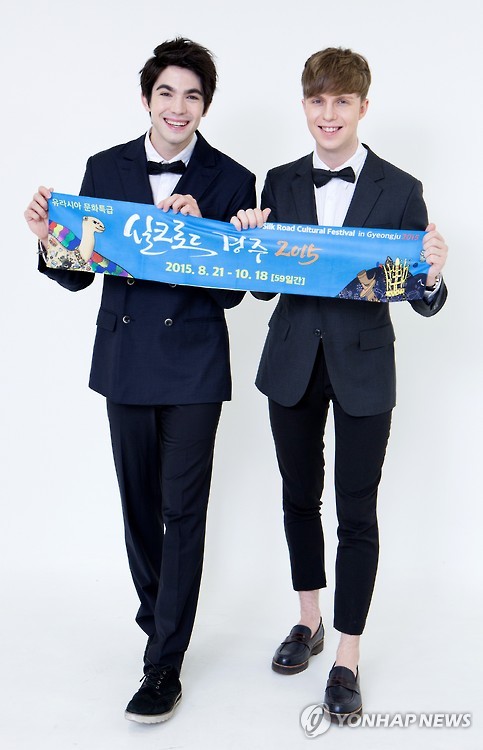 | △ 로빈과 줄리안 (경주=연합뉴스) 실크로드 경주 2015 홍보대사에 위촉된 로빈과 줄리안. 2015.8.4 << 경주엑스포 >> shlim@yna.co.kr |