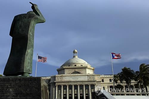| △ (산후안<푸에르토리코> AP=연합뉴스) 미국 자치령인 푸에르토리코의 채무불이행(디폴트)이 임박했다. 외신은 푸에르토리코가 3일(현지시각) 5천800만 달러(680억원)의 채무를 이행하지 못할 것으로 보인다고 전했다. 알레한드로 가르시아 파디야 주지사의 수석 보좌관인 빅토르 수아레즈도 7월 31일 "돈이 없어 5천800만 달러의 채무를 갚지 않겠다"면서 채권단과의 합의 도달을 여전히 기대하고 있다고 말했다. 푸에르토리코 수도 산후안 의사당 건물에 미국과 푸에르토리코 국기가 휘날리고 있다(7월 29일 촬영). ciy@yna.co.kr (끝) |