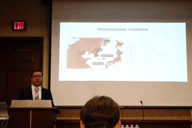 △ 미국 인권단체 LiNK의 박석길 정책연구국장이 5일(현지시간) 미 의회에서 강연하고 있다.