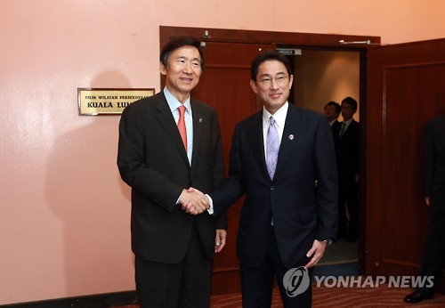 이날 회동은 기시다 외무상의 짧은 체류시간 탓에 양국이 막판까지 일정 조율에 어려움을 겪다 성사됐다.