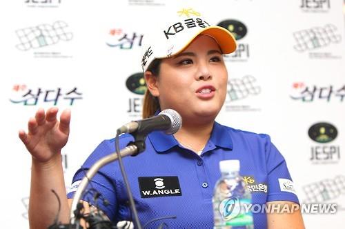 △ (제주=연합뉴스) 변지철 기자 = 커리어 그랜드슬램을 달성한 '골프여제' 박인비(KB금융그룹)가 KLPGA 투어 제주 삼다수 마스터스 대회를 하루 앞둔 6일 오후 제주 오라 컨트리클럽에서 취재진의 질문에 답하고 있다. 2015.8.6 bjc@yna.co.kr