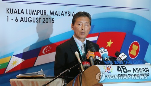 | △ 기자회견하는 북한 리동일 (쿠알라룸푸르=연합뉴스) 박동주 기자 = 북한 리동일 외무성 대변인이 6일 말레이시아 쿠알라룸푸르 푸트라세계무역센터(PWTC)에서 기자회견을 하고 있다. |