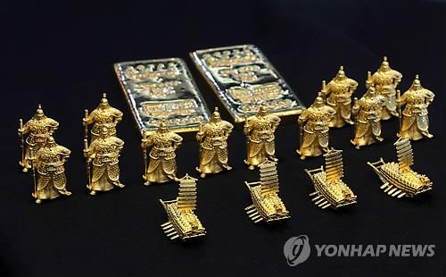 | △ 순금으로 만든 이순신장군과 거북선 모습(자료사진) |