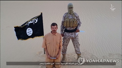 | △ IS, 이집트 정부에 인질 살해 협박 (두바이=연합뉴스) 이슬람국가(IS) 이집트 지부는 5일 이집트 정부가 48시간 안에 여성 수감자를 모두 석방하지 않으면 카이로에서 납치한 크로아티아 인질 1명을 살해하겠다고 협박하는 동영상을 인터넷으로 유포했다. 2015.8.5 << 유튜브 캡처>> hskang@yna.co.kr |
