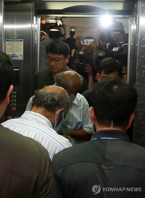 | △ 법원 들어서는 피고인 (대구=연합뉴스) 김준범 기자 = 17년 전 대구에서 발생한 '여대생 사망 사건'의 범인으로 지목된 스리랑카인 K(49)씨가 항소심 선고공판 출석을 위해 11일 오전 대구고등법원으로 들어서고 있다. 2015.8.11 psykims@yna.co.kr |