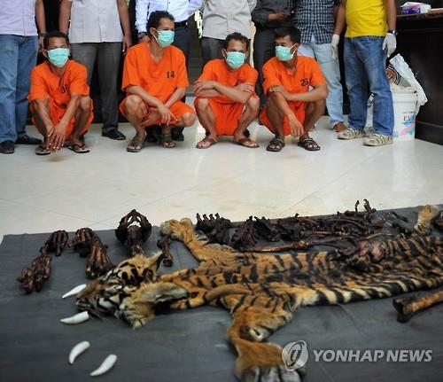 (서울=연합뉴스) 권수현 기자 = 아프리카 짐바브웨의 '국민사자' 세실이 잔인하게 사냥돼 세계적으로 공분을 불러일으킨 가운데 인도네시아에서 멸종 위기에 놓인 호랑이를 죽인 밀렵꾼들이 당국에 체포됐다.