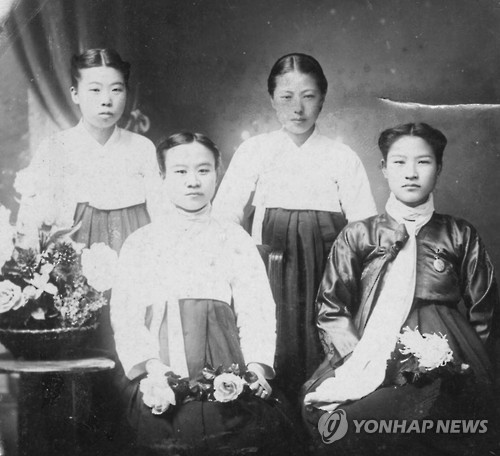 △ 여성 독립운동단체 '송죽비밀결사대' (서울=연합뉴스) 평양 숭의여학교를 중심으로 1913년 조직된 송죽비밀결사대. 앞줄 왼쪽부터 송죽비밀결사대이자 숭의여학교 교사인 김경희, 김신희 지사. 여성가족부와 광복 70년 기념사업추진위원회는 오는 12∼23일 서울 종로구 대한민국역사박물관에서 '독립을 향한 여성 영웅들의 행진'을 주제로 특별기획전을 개최한다. (여성가족부 제공)
