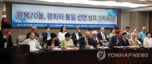 (서울=연합뉴스) 김동규 기자 = 광복과 분단 70년을 맞아 한반도의 분단·대결 종식과 통일·평화공동체 실현을 촉구하는 시민사회의 공동선언이 발표됐다.