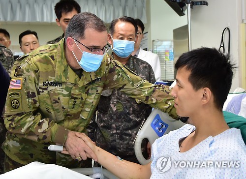 한미연합사령관, 지뢰폭발 부상자 문병…"진정한 영웅"(종합)