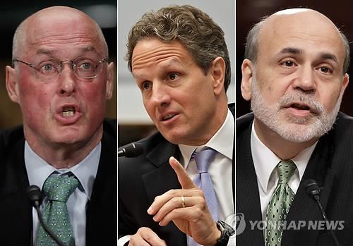 금융위기 수습 '3인방' 버냉키·폴슨·가이트너 한자리에