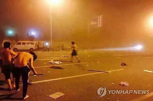 (톈진 신화·AP=연합뉴스) 중국 동북부 톈진(天津)항에서 12일 오후 11시30분(현지시간)께 대형 폭발사고가 발생해 최소 13명이 사망하고, 300∼400명이 부상했다.