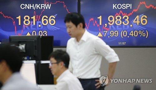 '위안화 충격' 완화…코스피, 1,980선 회복