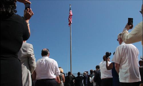 성조기가 깃대 꼭대기에 올라서 멈추자 대사관 주변 말레콘 방파제와 거리에서 이를 지켜보던 쿠바 국민들은 우뢰와 같은 박수 속에서 "비바" "브라보"를 외치거나 쿠바 국기를 흔들었다. 일부 국민은 아파트 옥상이나 건물 베란다로 나와 탄성을 질렀다.