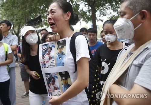 톈진 폭발사고 실종·사망 소방관 가족, 정보공개 요구 시위