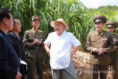 △ 종자농장 시찰하는 북한 김정은 (평양 조선중앙통신=연합뉴스) 북한 김정은 국방위원회 제1위원장이 지난 5월에 이어 인민군 종자연구농장인 제810부대 산하 1116호 농장을 시찰했다고 조선중앙통신이 13일 보도했다. 2015.8.13 photo@yna.co.kr