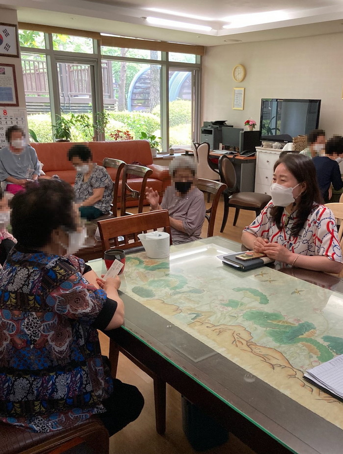 먼저 경로당 어르신들의 건강과 생활에 대해 확인하고 코로나19 방역수칙 준수 여부를 점검했다. 특히 백신 2차 접종 완료 어르신 대상 열 체크 등 철저한 출입자 관리, 경로당 내 마스크 착용 및 취식금지, 이용 정원의 50% 이하 운영, 수시 환기 등 방역수칙 준수를 당부하였다.