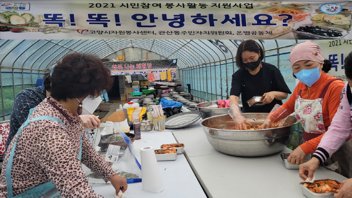 [부자동네타임즈 김인수기자 고양시 덕양구 관산동(동장 성운현) 주민자치위원회(위원장 김문식)에서는 지난 5월 27일 관내 어려운 이웃들에게 따뜻함을 나누고 혼자 사는 어르신들의 안부를 묻는 ‘똑! 똑! 안녕하세요?’ 반찬 나눔 사업을 추진했다.