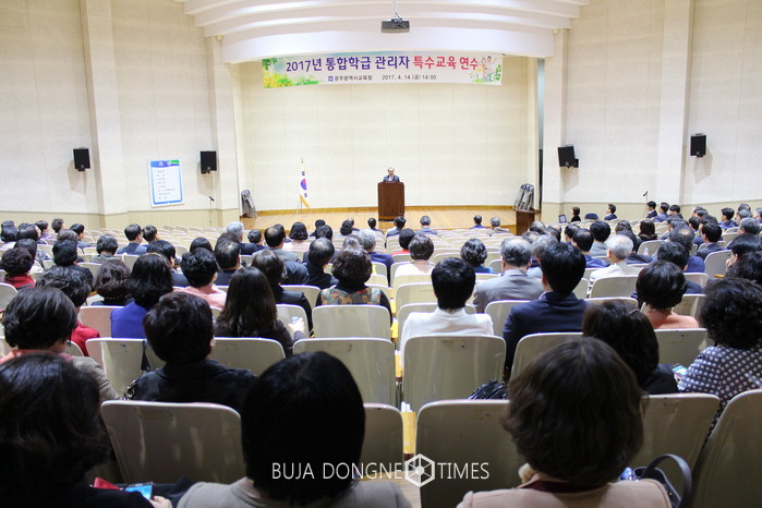14일 광주시교육청(교육감 장휘국)이 일반학교에 배치된 장애학생들의 교육차별 해소와 학습권 보장 그리고 통합교육 활성화를 위해 '2017 통합학급 관리자 특수교육 연수회'를 개최했다.